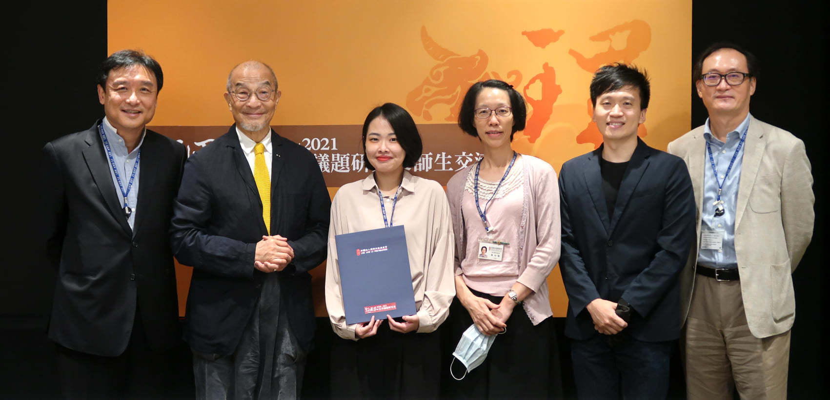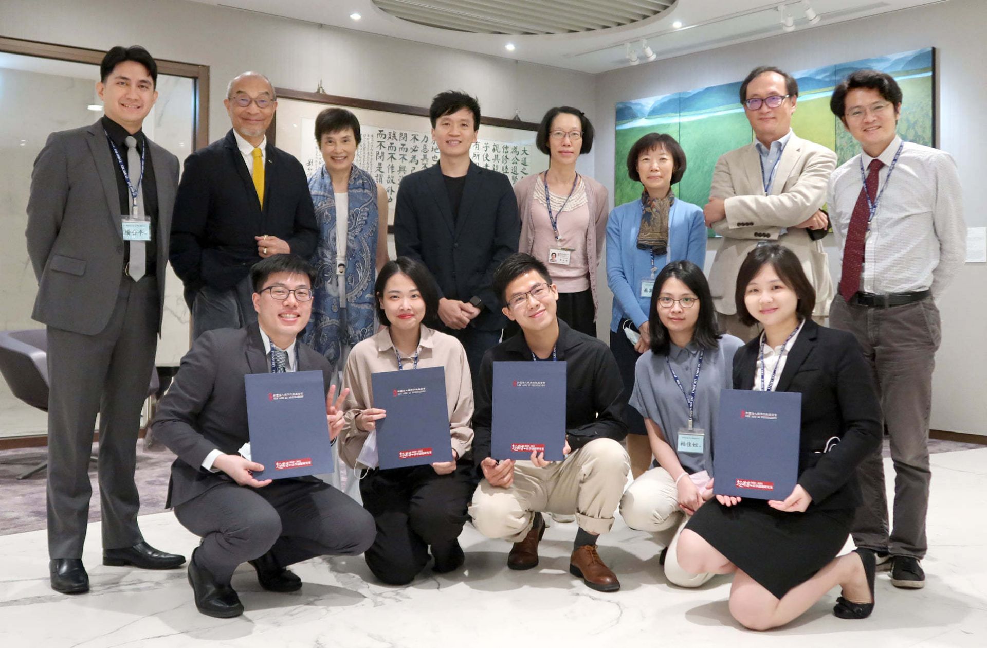 此為獲獎學生陳怡靜同學(前排左2)與指導老師林勤富副教授(後排左4)以及理律文教基金會合照。