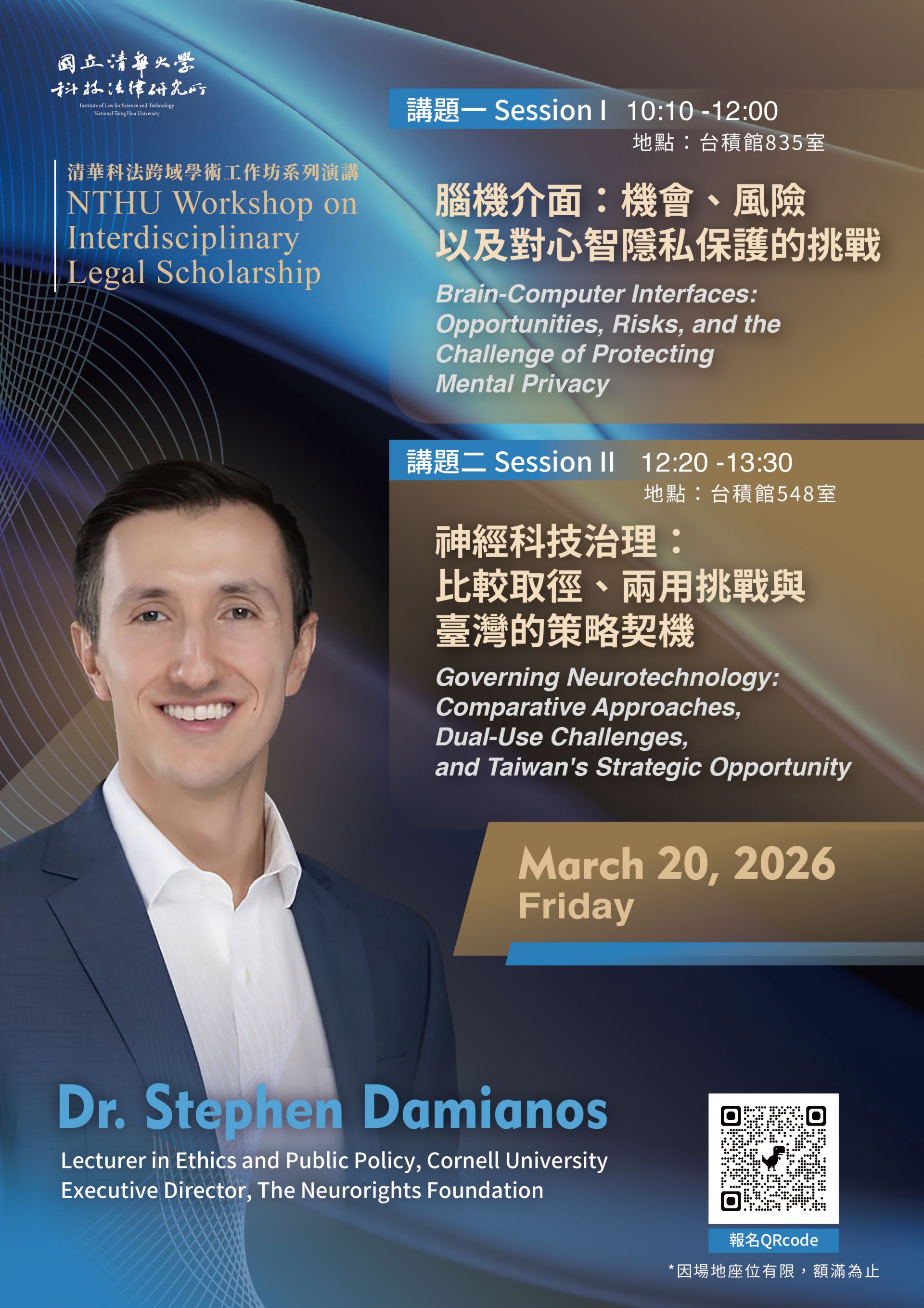 講題:Governing Neurotechnology: Comparative Approaches, Dual-Use Challenges, and Taiwan's Strategic Opportunity