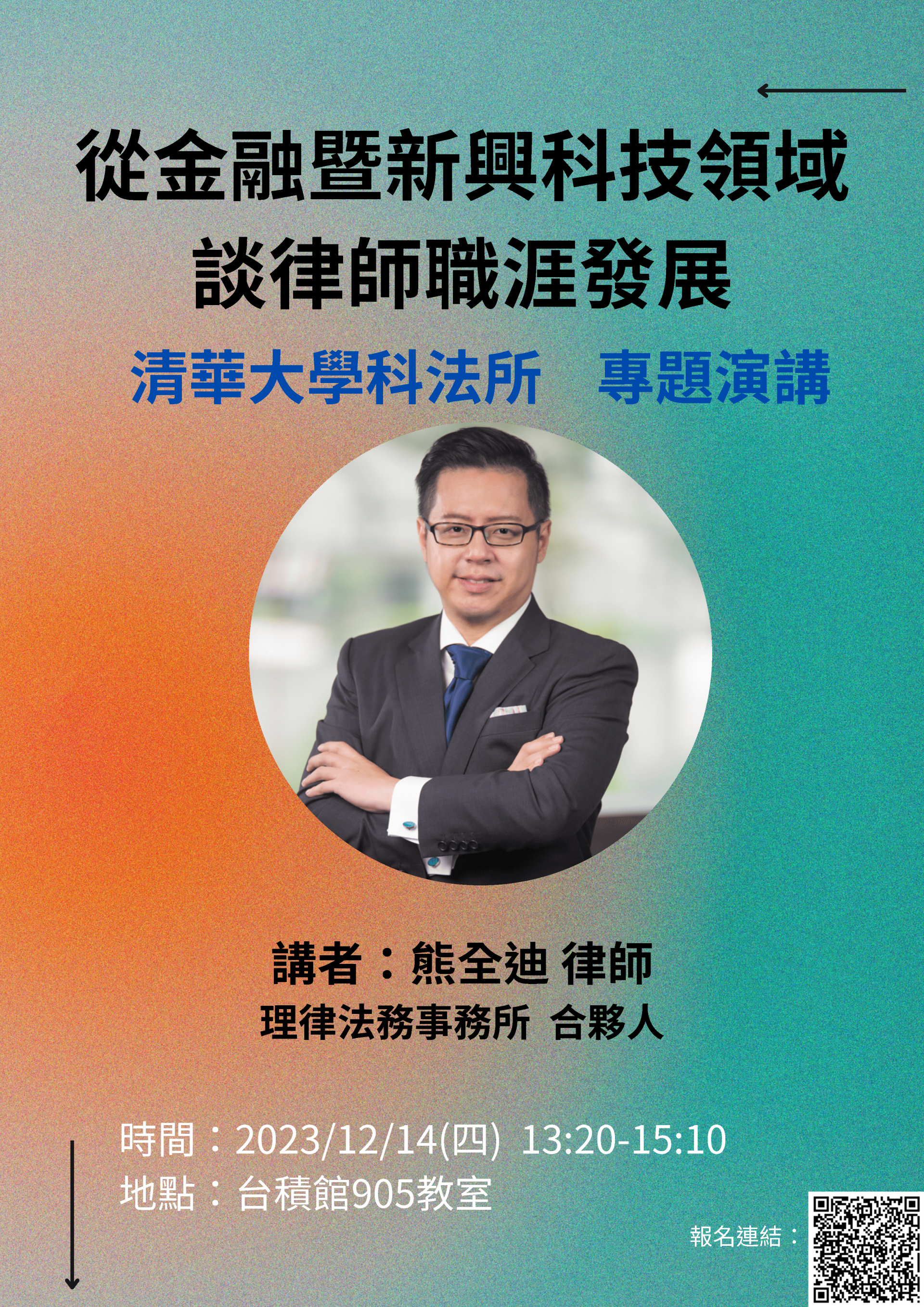 【專題演講】從金融暨新興科技領域談律師職涯發展