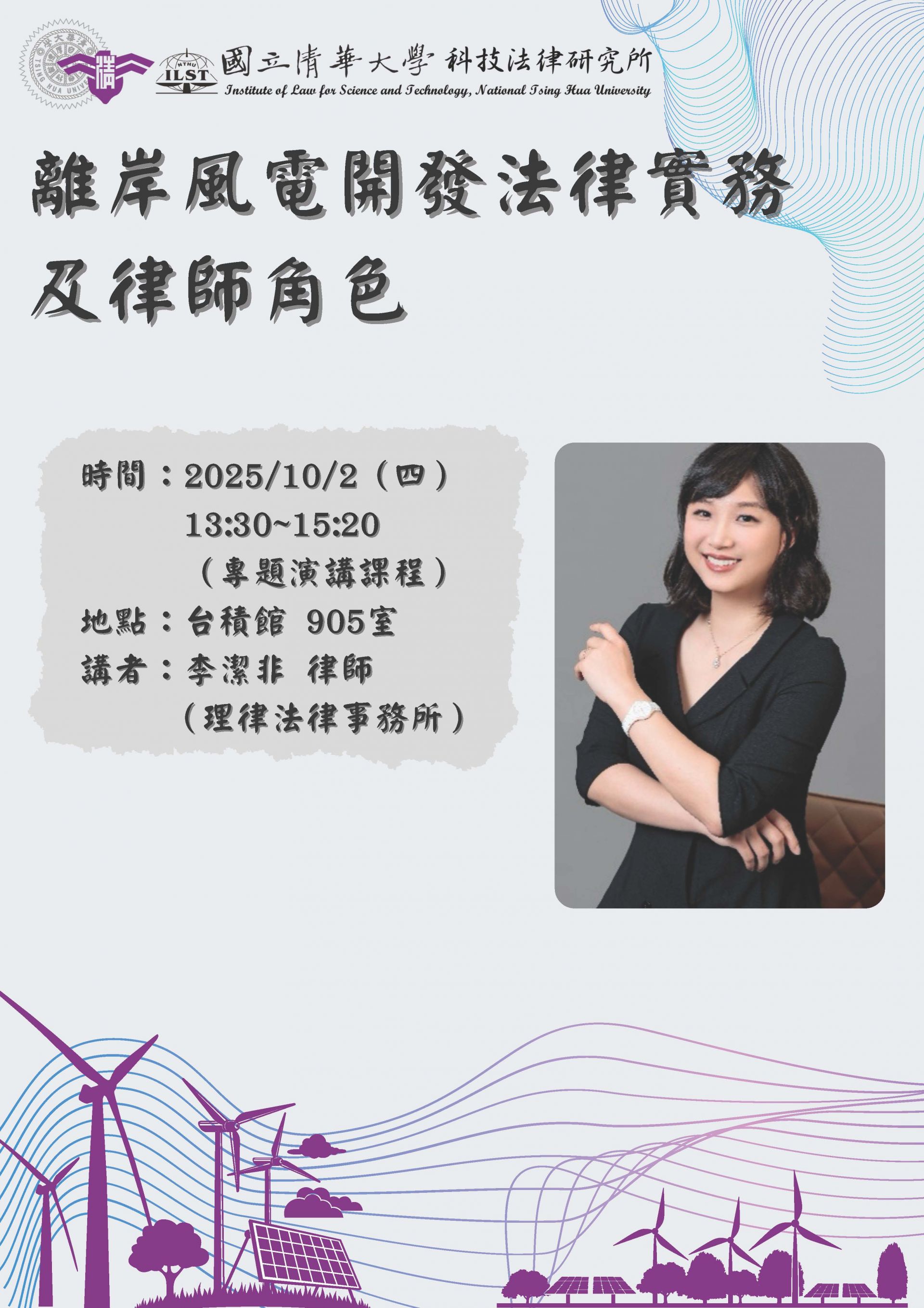 【專題演講】理律法律事務所李潔非律師—離岸風電開發法律實務及律師角色