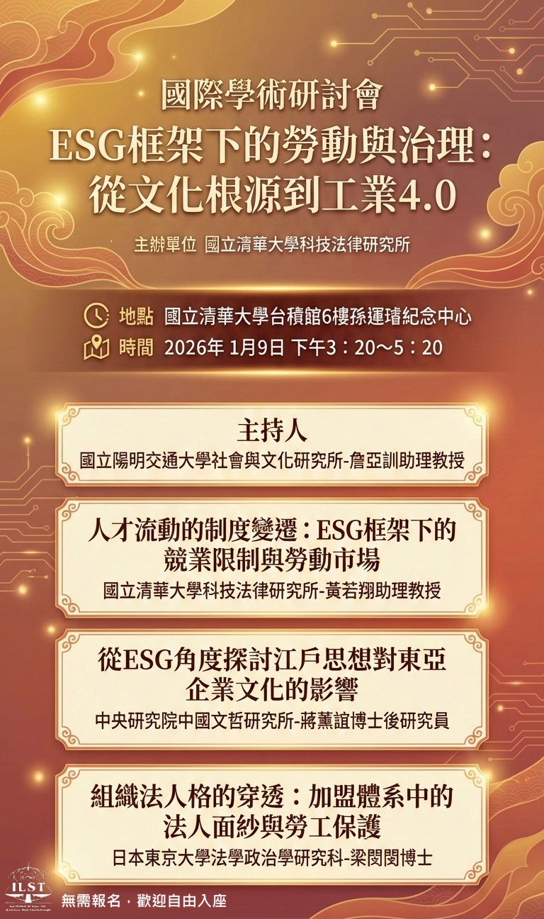 【研討會】國際學術研討會 ESG框架下的勞動與治理:從文化根源到工業4.0